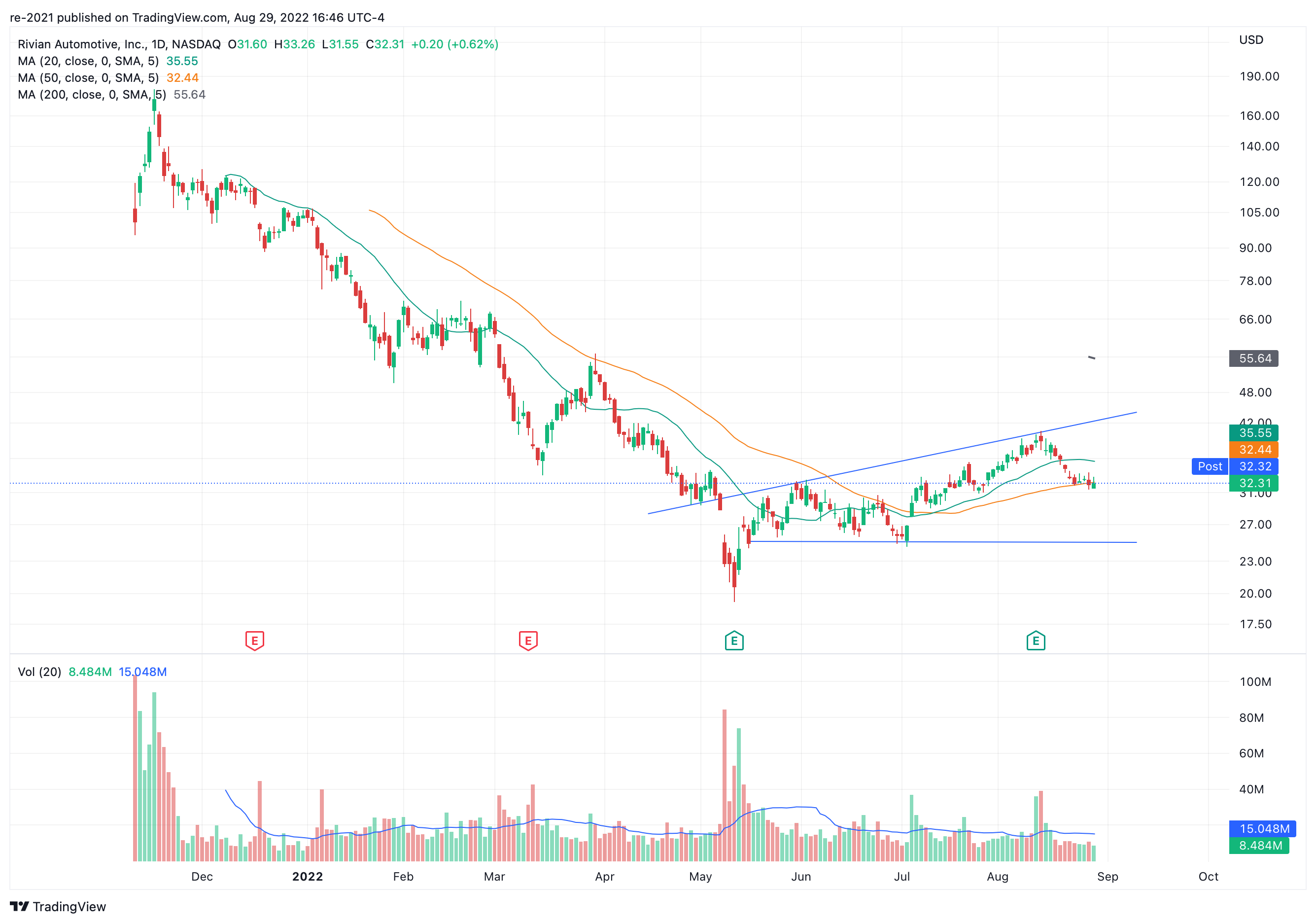 RIVN is engaged in designing, developing, and manufacturing electric vehicles. The company has the backing of Amazon and Ford which together own roughly 27% of the company. It is worth mentioning that Ford sold some shares recently. At this stage it is extremely difficult to value the company but if we can use where Tesla used to be at this stage as a guidance, we come up with a value of $40 per share. The stock is trading at $32 today, however we don't think it represents a deep enough discount for the risk taken yet.